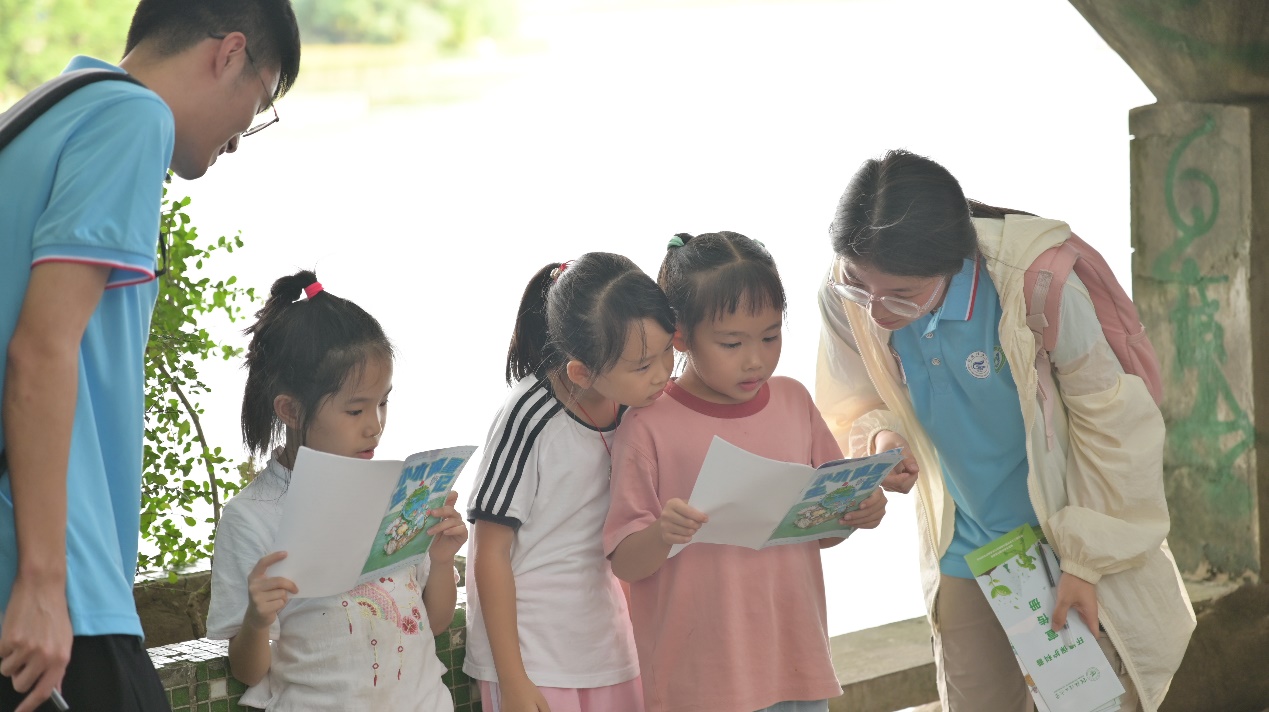 團隊成員向小朋友宣傳“小水滴”畫冊