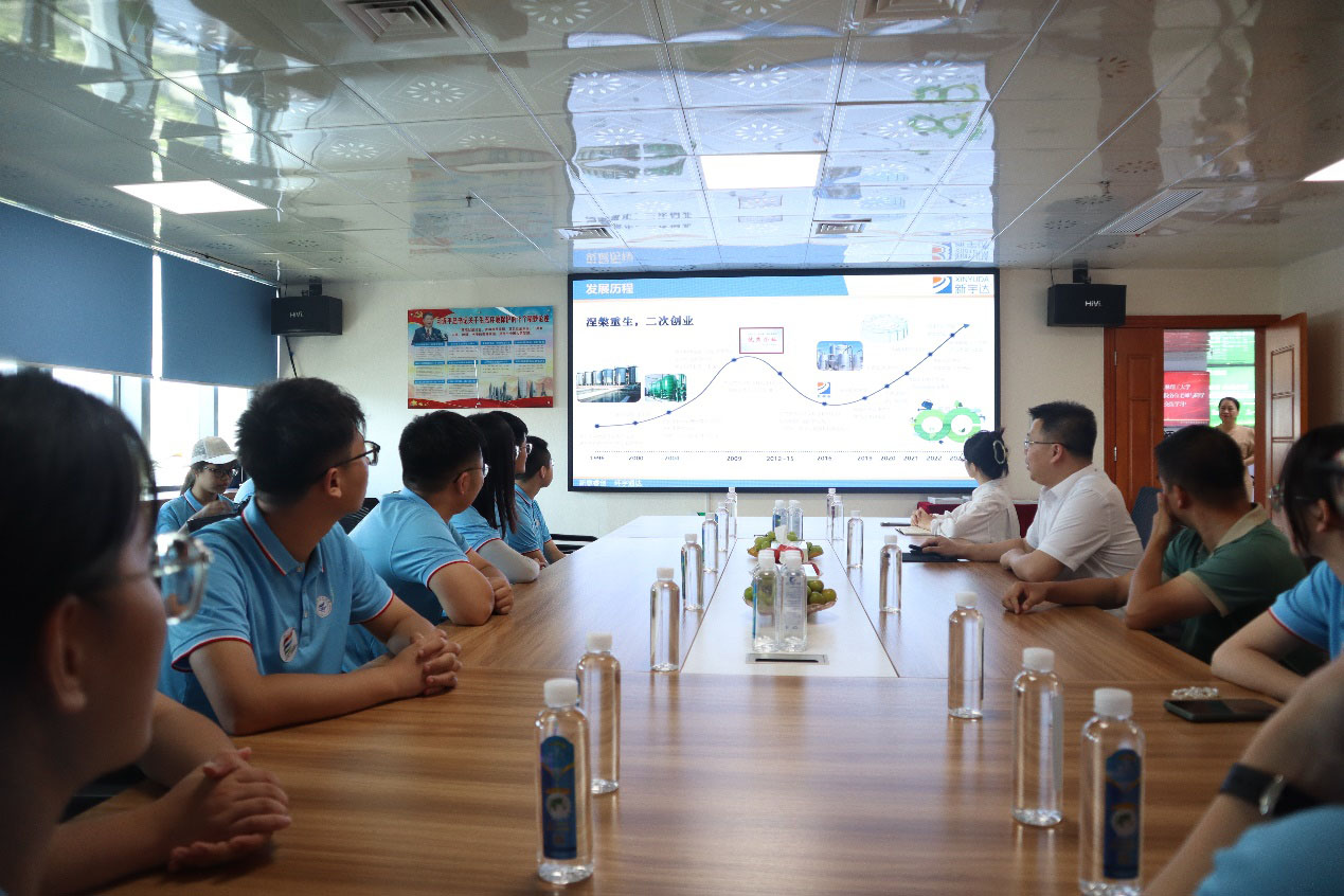 在公司負責人的熱情接待下,實踐團成員們首先了解了公司最新研發設計的新型復合式污水處理裝置,隨后,工作人員帶領實踐團隊進入到“環保超市”,介紹公司研發的各種產品、裝置,通過生動的講解,團隊成員詳細了解了公司在村鎮污水治理及運維、給水凈化處理、工業污水處理、農村生活垃圾處理、生態環境修復等領域的技術和成功案例。最后,公司負責人與實踐團隊開展了一場面對面的交流座談會,詳細介紹了公司的發展計劃以及現有發展情況,并與實踐團隊進行了討論。
