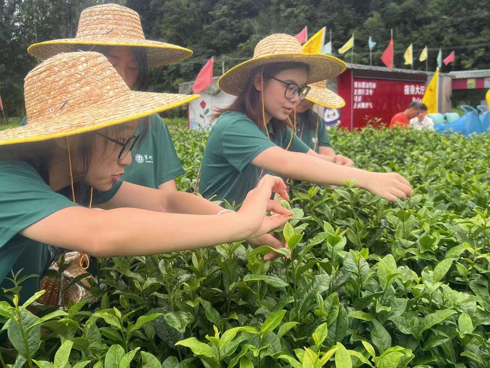 實踐團成員身著統一服裝,肩背小簍,親身體驗了茶農的日常勞作。在資深茶農的悉心指導下,學生們迅速掌握了采茶的基本技巧,感受了從自然到茶香的奇妙轉變,團隊成員們深深知曉了種茶制茶的艱辛,大家紛紛表示,要傳承和弘揚中華茶文化,讓更多人了解并愛上這份源自自然的饋贈,為未來的鄉村振興貢獻青春力量。