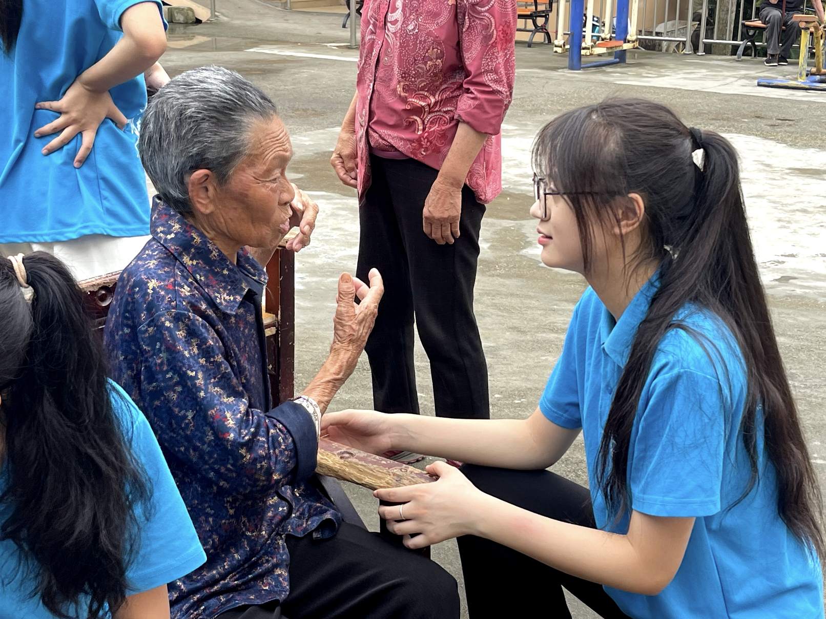 (圖為實踐團成員與老人聊天 黃智慧供圖)
