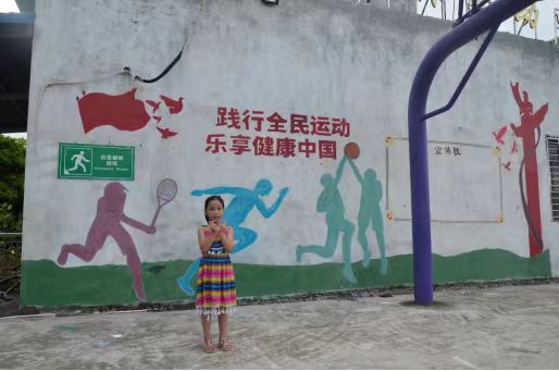 圖6-3 小朋友在羅壩村墻繪作品前打卡