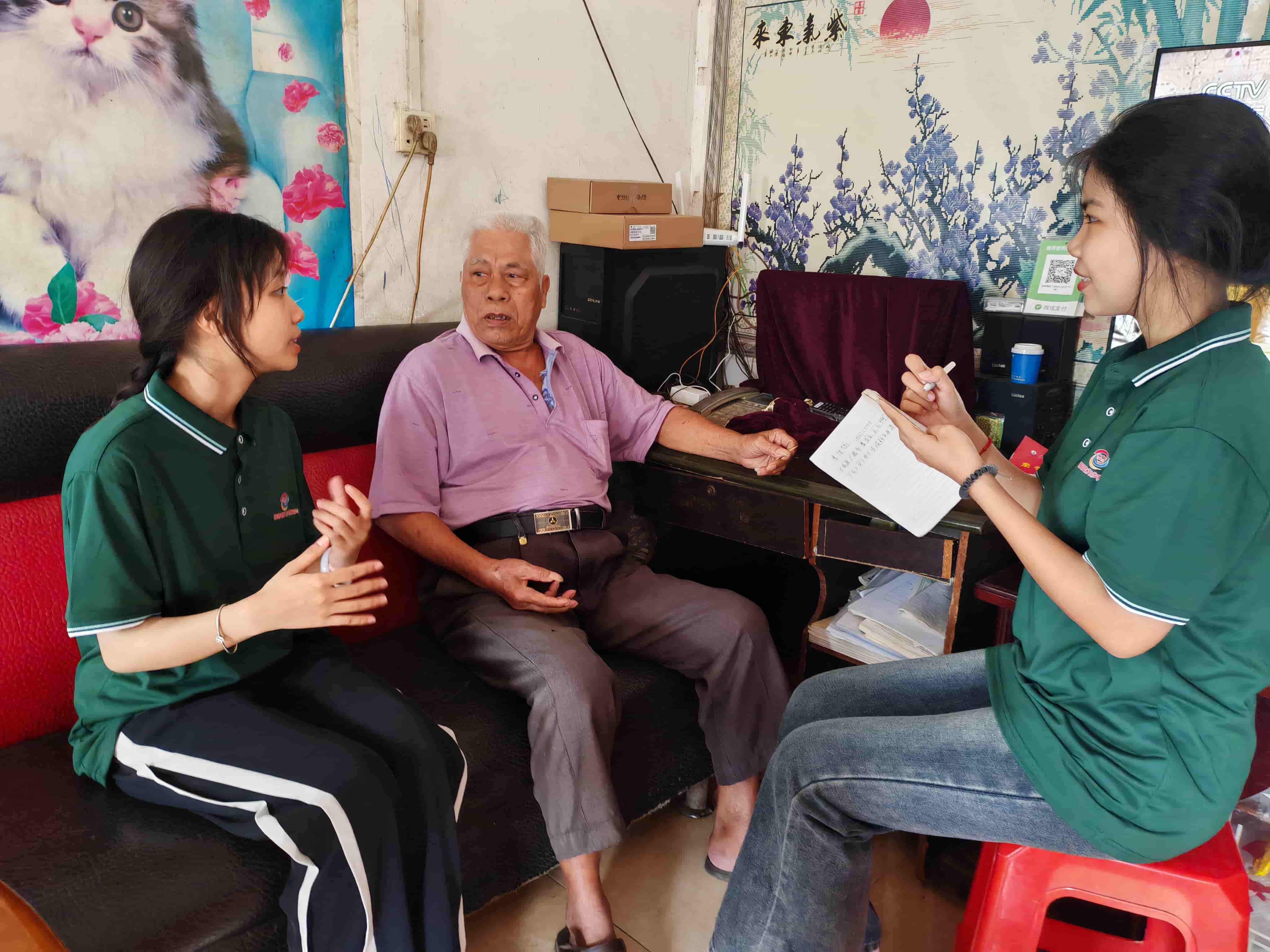 圖為推普實踐團成員與都斛村民們對普通話的使用情況進行深入溝通交流。通訊員 何鴻櫻 供圖
