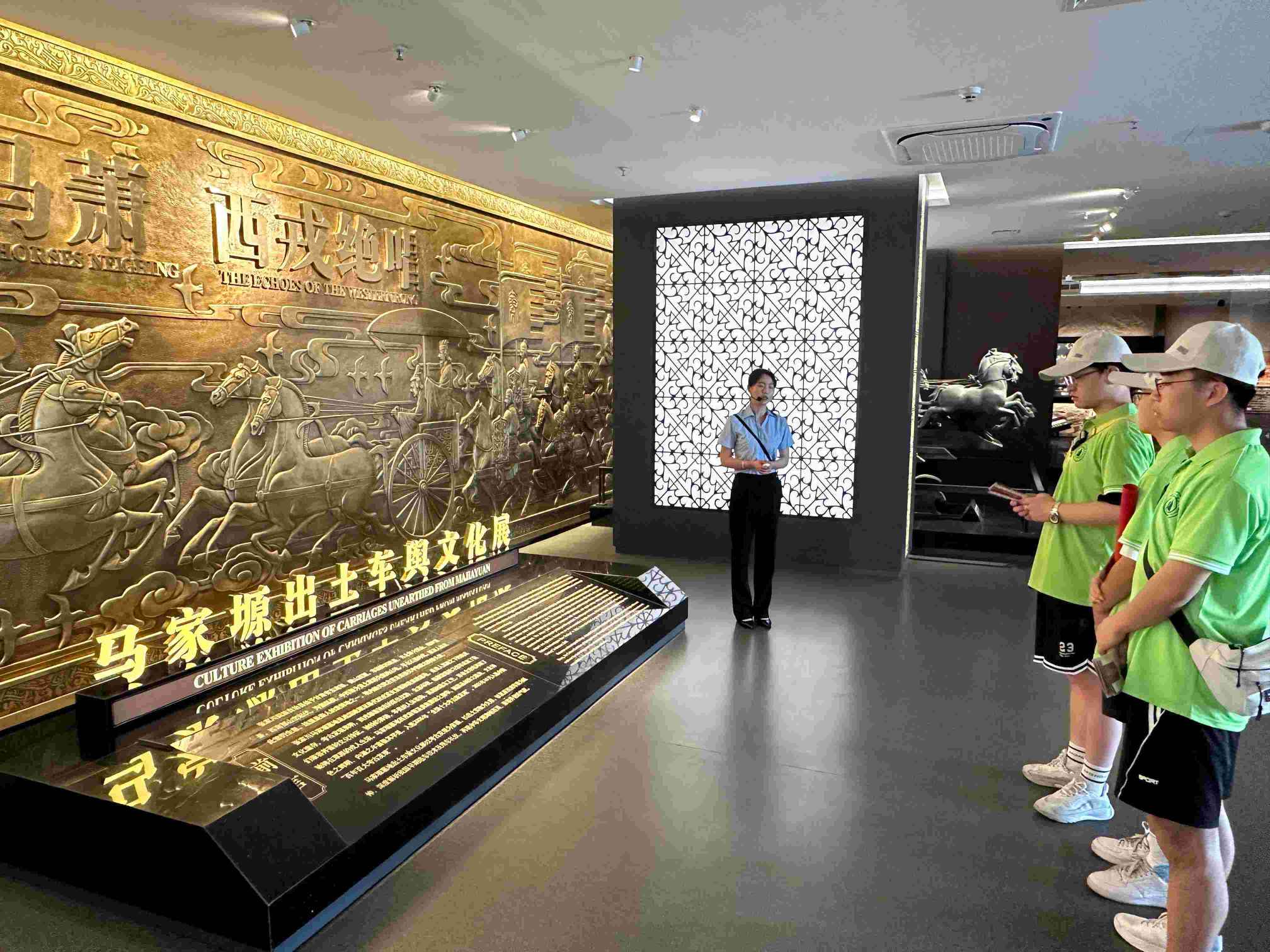 7月17日至7月18日,他們進(jìn)入馬家塬車(chē)輿博物館,進(jìn)一步探求上述文化創(chuàng)新模式的可行性。在進(jìn)入博物館之后他們?cè)诮庹f(shuō)員的帶領(lǐng)下,對(duì)馬家塬車(chē)輿文化進(jìn)行了詳細(xì)的講解,他們認(rèn)真學(xué)習(xí),對(duì)馬家塬文化遺址有了一個(gè)全新的認(rèn)識(shí),更加確定了要宣傳馬家塬文化遺址的決心。