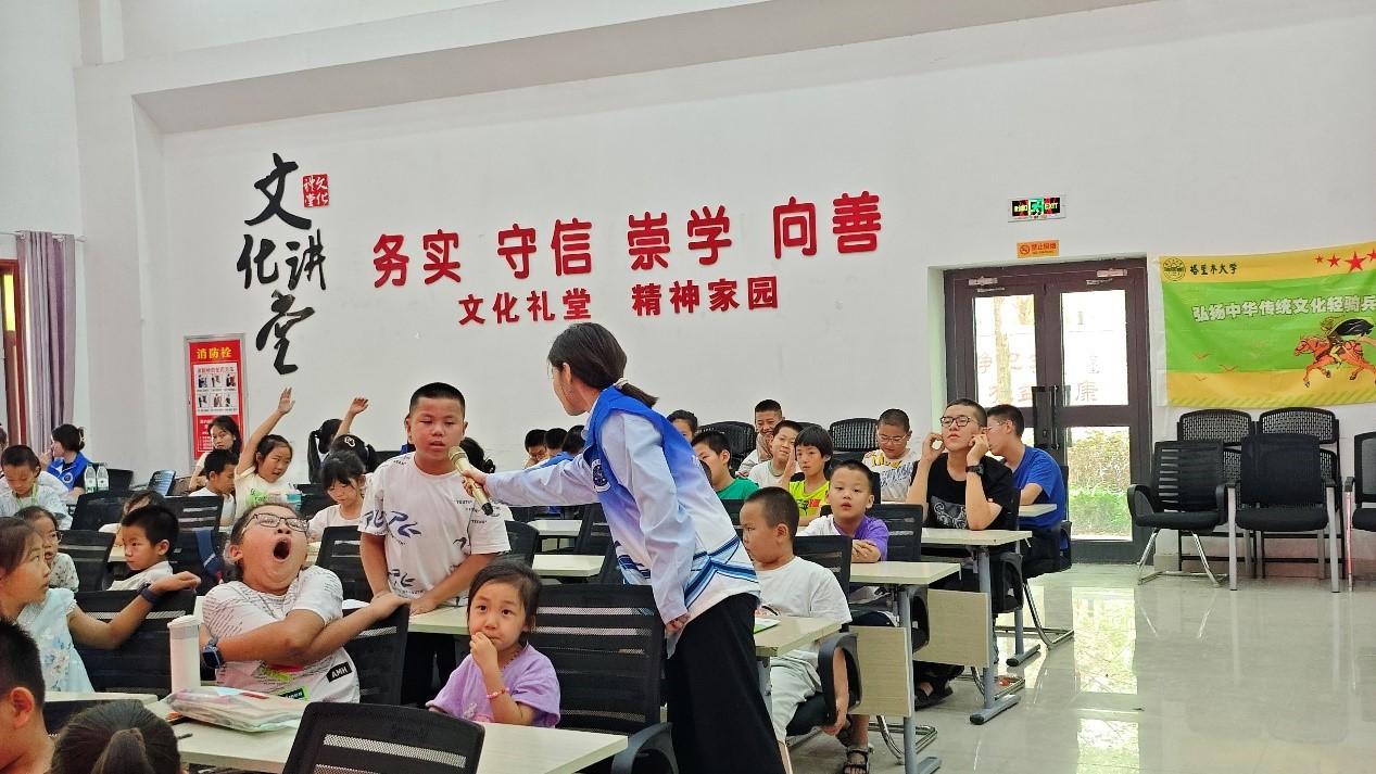 小朋友們積極回答,認(rèn)真創(chuàng)作,宣講團(tuán)成員為敢于創(chuàng)作的小朋友給與了相應(yīng)的獎(jiǎng)勵(lì)。