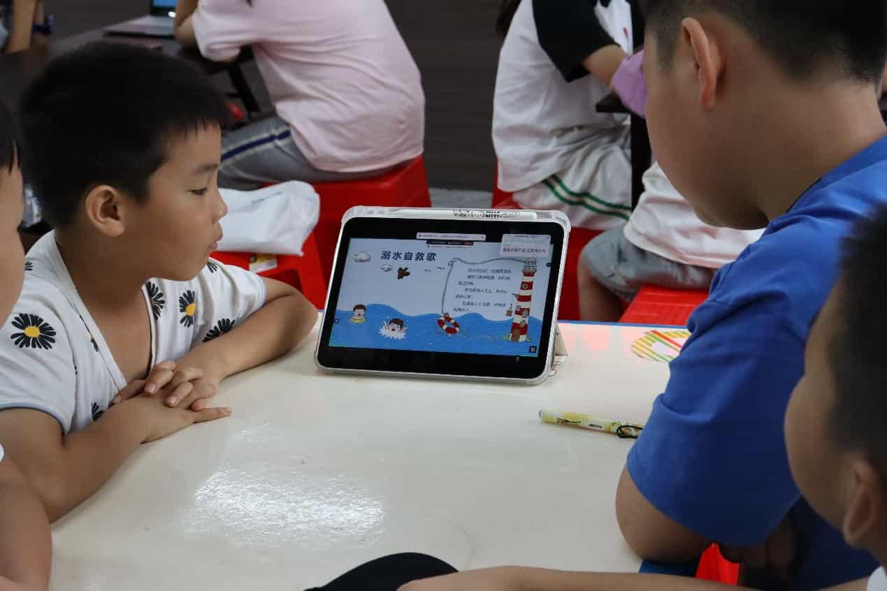 (圖為孩子們正在學(xué)習(xí)溺水自救歌)