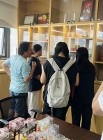團隊成員們走進二樓的非遺工坊,與非遺傳承人進行了深入的交流。南京剪紙傳承人向隊員們詳細介紹了南京剪紙悠久的歷史以及發展過程,并分享了一些剪紙的經驗與做法。剪紙看似簡單,但要真正剪出一幅精美的作品,需要全神貫注的投入,稍有不慎,就可能前功盡棄。只見傳承人憑借一把剪刀,就能在紙上揮灑自如,創造出栩栩如生的人物、花鳥、動物等形象。經過傳承人的一番介紹后,也讓我們對南京剪紙有了新的認識,它的精湛技藝令人嘆為觀止,其對細節的把控和造型的巧妙構思,體現了工匠們的專注與執著。這種對藝術的極致追求,提醒著我們在生活和工作中也要保持精益求精的態度。
