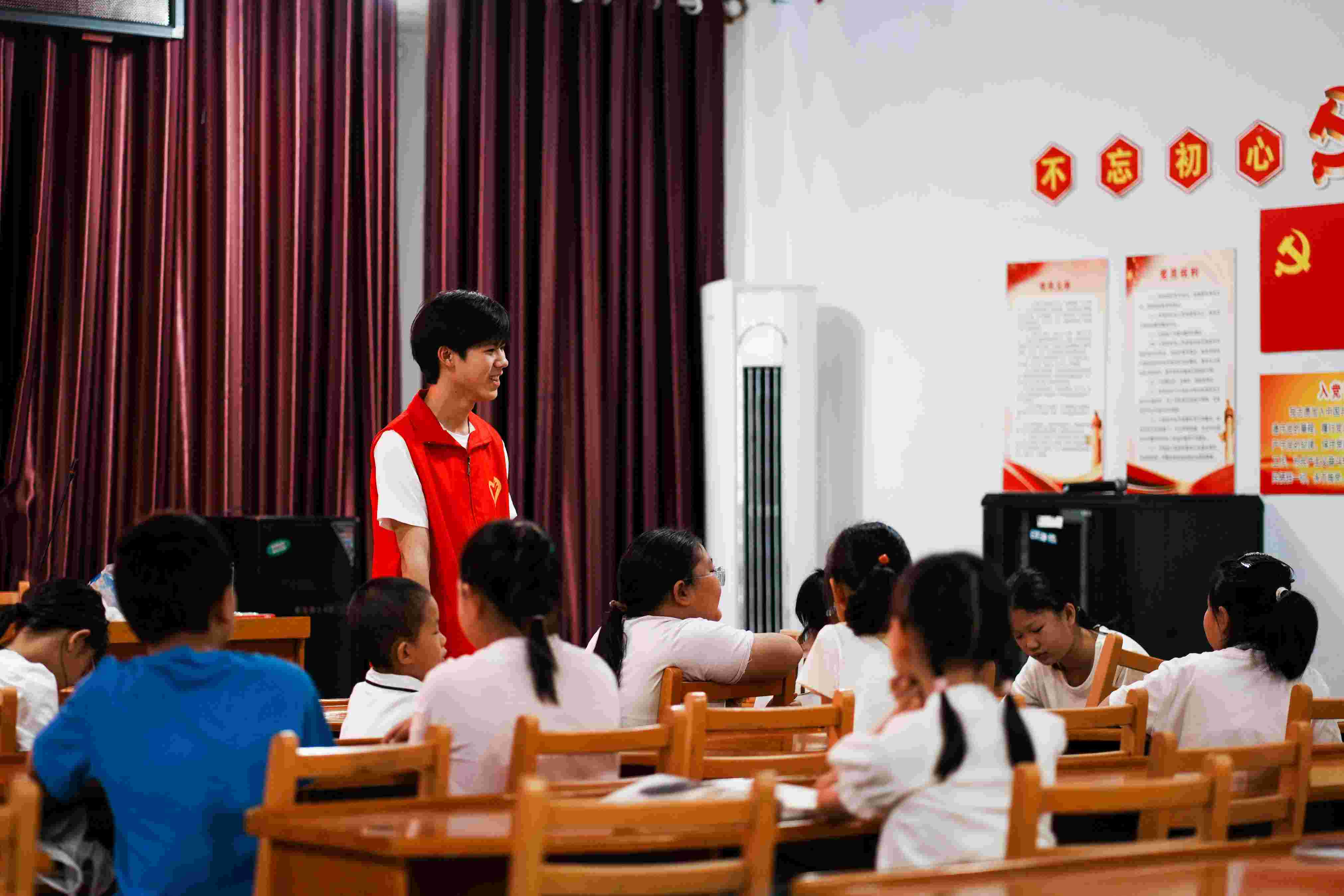 活動首日,我們團隊成員與師生展開了一場深入而溫馨的對話。此次交流不僅深化了我們對學生群體的全面認識,更讓我們深切感受到西湖鎮對我們工作的熱烈歡迎與堅定支持。青年實踐團志愿者們匠心獨運,量身定制了跨年級的環保教育藍圖,旨在通過寓教于樂的形式,讓環保的綠意在他們心中。