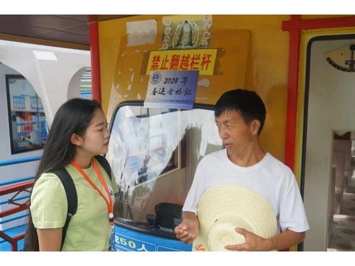 據化屋村村民尤榮文介紹,近年來,家鄉旅游發展風生水起,游客紛至沓來,尤榮文與兄弟們依托家鄉秀美的山水,成立航務公司,鉚足干勁,用勤勞奮斗創造更加美好生活。跟隨黨和政府的腳步,化屋村旅游基礎設施不斷完善,旅游產業蓬勃發展,鄉村面貌煥然一新。在尤榮文的帶領下,實踐團隊登上游船,探尋山水秘境,體驗厚重人文,尋找悠悠鄉愁。