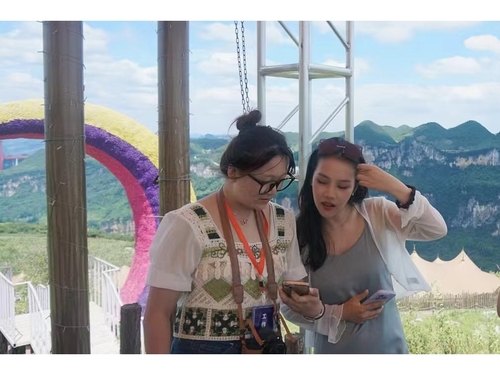 實踐團隊來到花都里化屋度假營地進行實地調研。站在營地內遠望,右可看化屋山水之美,左可看大橋之雄壯。實踐團隊與當地工作人員圍繞露營基地發展現狀、獨特優勢等展開交流,了解到露營基地有獨立的餐飲區、懸崖咖啡廳等,是省內目前規模較大的度假營地。實踐團隊采訪當地游客時,她表示從相關媒體報道中了解到當地的巨變,前來一睹為快,一覽碧波蕩漾的東風湖水,欣賞奇山秀石,領略“大鵬展翅”崖壁呈現出的兩源交匯壯美景觀。