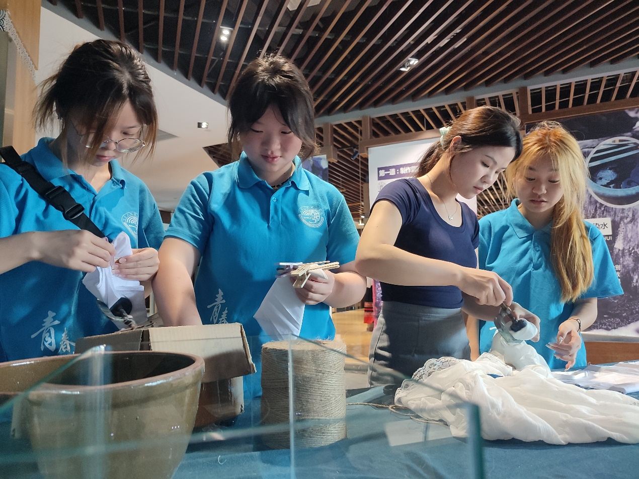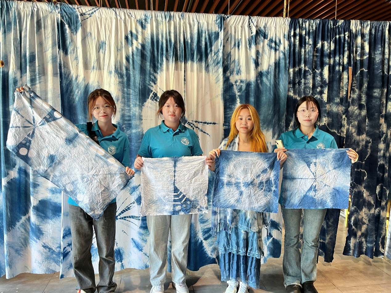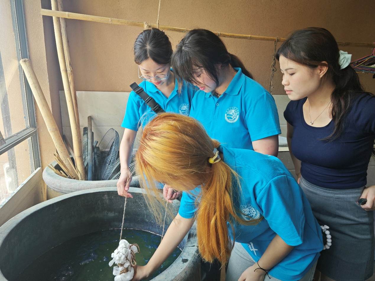為了更加深入地了解布依族文化,領(lǐng)略布依族扎染工藝中蘊含的民族智慧和文化精髓,體驗布依族扎染工藝的獨特魅力。2024年7月17日,重慶人文科技學(xué)院“探黔西南秘境,‘鄉(xiāng)’約山水冊亨”暑期社會實踐團踏上了探尋非遺扎染藝術(shù)的征程。