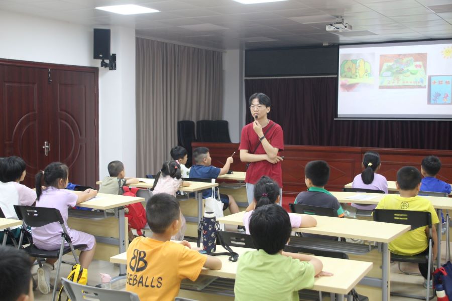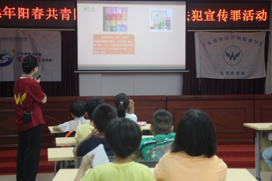 伴隨著夏日的蟬鳴與稻香,廣東省外語(yǔ)藝術(shù)職業(yè)學(xué)院基礎(chǔ)教育學(xué)院五燕戲劇團(tuán)支教隊(duì)于2024年7月12日-7月18日,在陽(yáng)春市青少年綜合服務(wù)中心開(kāi)展了為期7天的暑期社會(huì)實(shí)踐活動(dòng)。本次實(shí)踐活動(dòng)積極響應(yīng)國(guó)家關(guān)于青年學(xué)生參與社會(huì)實(shí)踐的號(hào)召,以“傳統(tǒng)文化和雙語(yǔ)戲劇”為主題,五燕戲劇團(tuán)支教隊(duì)緊扣主題,向?qū)W生們開(kāi)展了拓染,粘土,繪本三門(mén)手工課。手工制作可以提高學(xué)生們的動(dòng)手實(shí)踐能力,也有助于學(xué)生們養(yǎng)成耐心,細(xì)致的內(nèi)在品質(zhì)。