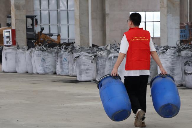 7月11日下午,在團隊隨行研究生楊勝男的帶領下,小組成員來到南京農業大學生物質炭工程示范中心,拿起鐵鍬和鐵桶,親身參與生物質炭化,體會變廢為寶的過程。