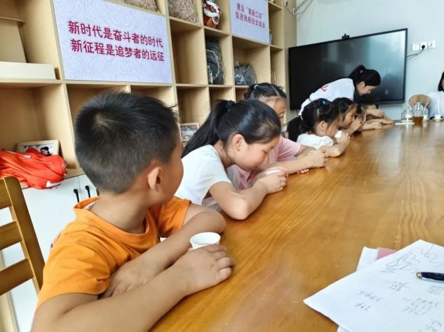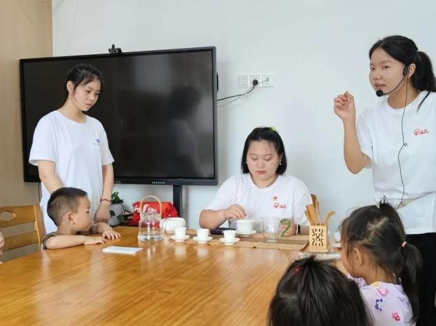圖4-5 “暖藝”青年志愿服務(wù)隊(duì)隊(duì)員們正在為小朋友上茶藝課(王美琪/攝)