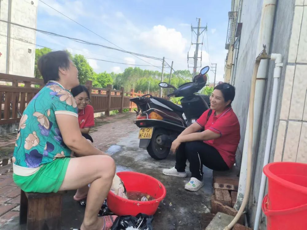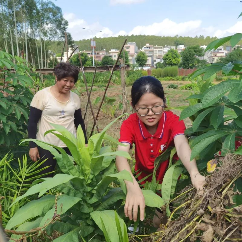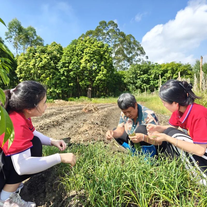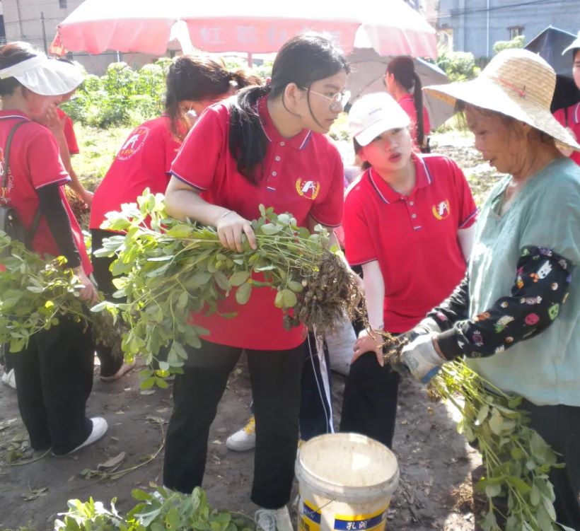 我們拔花生、摘韭菜、除雜草,投入到熱火朝天的勞動中,拉近了我們與農民之間的距離,更讓實踐隊成員們對農業生產的艱辛與重要性有了更為直觀且深刻的認識。背景中的民居與綠樹,映襯出這不僅是知識的傳遞,更是城鄉交融、助力鄉村振興的美好實踐。考察與實踐不僅讓我們增加了對農業的理解,更激發了我們服務社會的責任感。