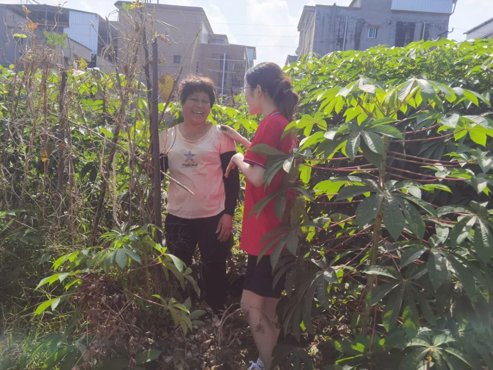 (圖為指導老師蔡文蓮老師帶隊前往附近居民家了解他們的生活情況 實踐隊供圖)