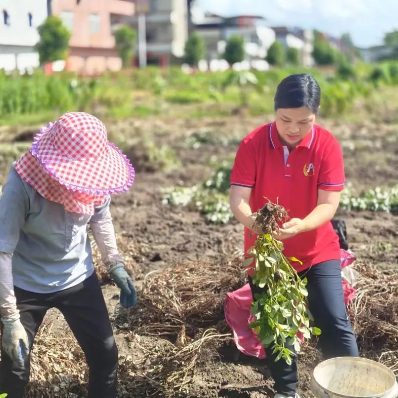 (圖為實踐隊成員們和辛勤勞作的村民們親切交流,協助其拔花生 實踐隊供圖)