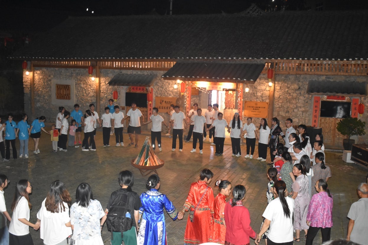 而作為活動的高潮,實踐團在晚間與西南政法大學的實踐團共同舉辦了一場生動的篝火晚會。在篝火的熊熊烈焰映襯下,團隊成員們與當地村民們共同參與了歌舞表演、民族樂器演奏以及文藝節目的展示。這場晚會不僅僅是文化的盛會,更是不同民族間友誼的橋梁,通過歡聲笑語和節慶氣氛,加深了彼此的情感交流和理解。“這次實踐活動讓每一位團多成員深刻體會到了文化的多樣性和民族團結的重要性。”一位參與者分享道,“通過親身經歷土家族文化的種種,我們更加珍視和尊重每一個民族的獨特貢獻,同時也更加堅定了文化多樣性對社會和諧的貢獻。”