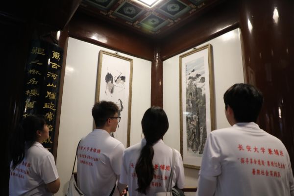 在實(shí)踐過(guò)程中,隊(duì)員閆雅梅結(jié)合現(xiàn)實(shí)場(chǎng)景和專業(yè)知識(shí)為同行師生詳細(xì)介紹了黃鶴樓的建筑結(jié)構(gòu)和特色,讓隊(duì)員們進(jìn)一步了解了黃鶴樓作為一座古建筑其背后的歷史意蘊(yùn)與文化價(jià)值。隨后,實(shí)踐隊(duì)進(jìn)入樓體內(nèi)部,參觀樓內(nèi)豐富的書畫作品。