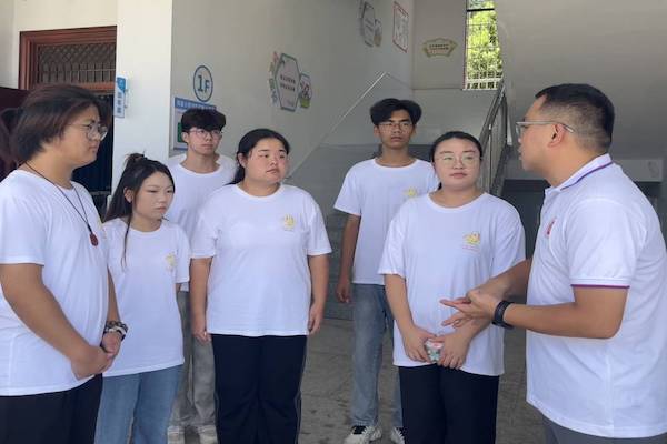 楊瑞書記詳細了解志愿者們的工作環境及后勤保障等情況,對隊員們的辛勤付出表示由衷的認可和高度贊譽,并為后續的實踐工作提出指導性意見。楊書記表示武昌理工學院歷年來高度重視志愿支教的開展情況,時刻關注志愿者們的動態,積極了解志愿者們的困難和需求,并及時給予支持和幫助。他強調志愿服務隊員們一定要牢記安全意識、明確安全責任,并鼓勵志愿者們就應該有“自找苦吃”的這股精氣神,發揮專業特長,將所學知識充分運用到實際當中,在實踐中鍛煉,在鍛煉中成長。