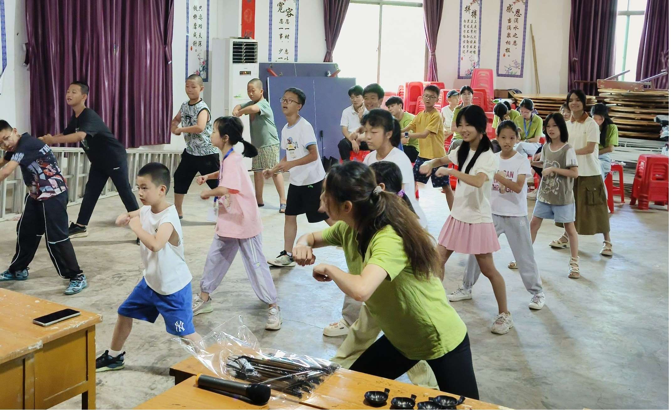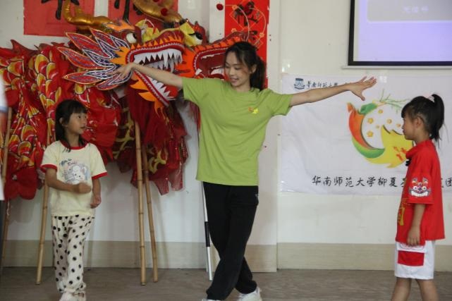 習近平總書記指出,要把體育鍛煉作為促進青少年身心健康成長的重要方式。華南師范大學柳夏星火實踐團遵循習近平總書記指導,緊扣“文蘊沁心田,星火織鄉夢”的課程主題,開展了一系列文化課程和體育活動課程。文體課程包括“健身韻動,舞出激情”特色街舞課程、“龍騰萬里,舞動梅州”梅州舞龍課程、“探索足球魅力,點燃運動激情”趣味體育課程、“風馳體育場,童心逐夢翔”趣味運動會。同學們在柳夏星火隊教學組組員(以下簡稱“老師”)的教學下積極融入課堂,擴寬知識面,增強身體素質。