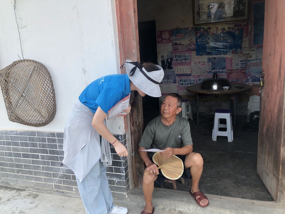 (圖中為實踐團成員向當地村民發放宣傳單)