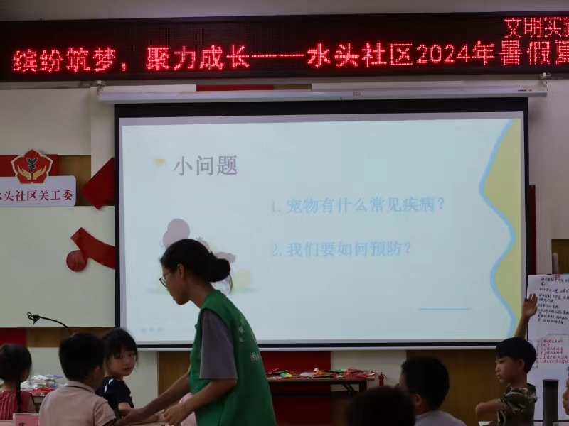 為響應我國發布的《中華人民共和國動物防疫法》,進一步增強青少年對養寵防疫的意識,引導孩子們自覺履行的防疫義務和責任,2024年7月23日,佛山大學“百千萬工程”突擊隊薪火助農實踐團共聚佛山市南海區大瀝鎮水頭社區幸福院,以“家里養寵防疫”為題的宣傳教育活動,給孩子們帶來一場別開生面的課堂。