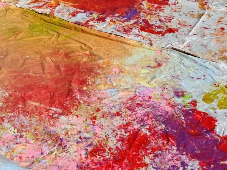 身體繪畫更像是一種情感的表達和個性的展示。孩子們通過腳踩、手涂,將自己的情感渲染到畫布上,明亮的顏色展現出他們多彩的內心世界。每一個手掌,每一只腳印都是他們去探索世界的心靈旅程。