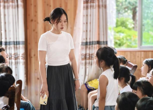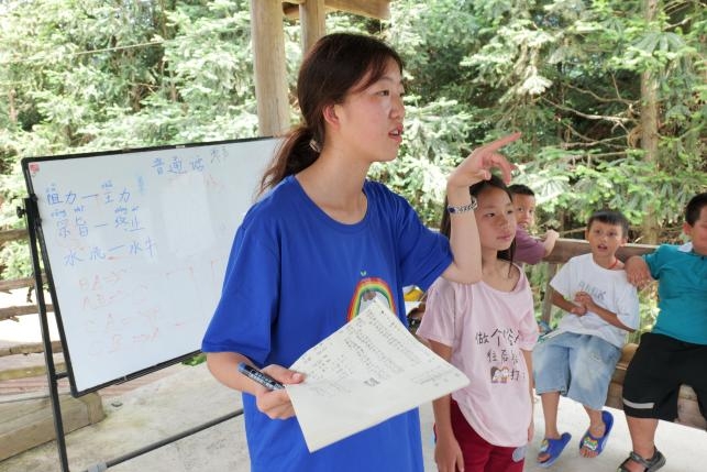 支教團段雅萌在上語文課 支教團靳琳虹在教孩子們說普通話
