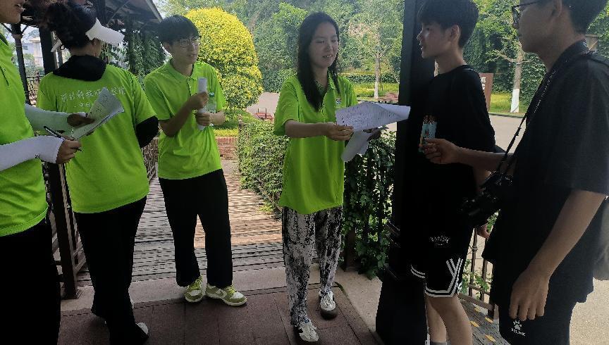 實踐團成員在西港花園分發關于歷史建筑保護意見的調查問卷 耿美月攝