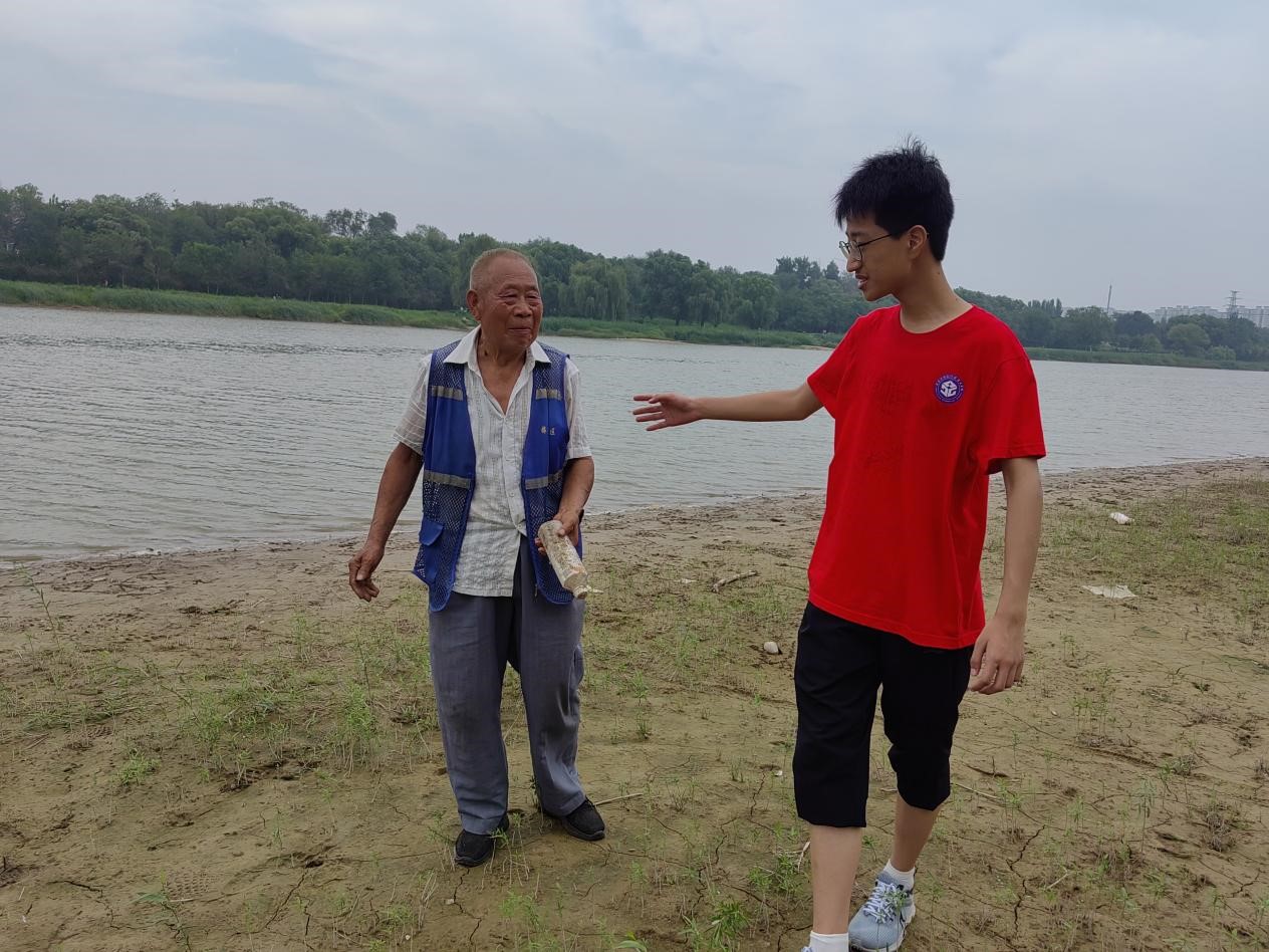 錦繡川風景區位于德州老城區與東部城區結合部,由岔河部分河道修整而成。河面水光搖動,偶見白鷺嬉戲,信美信善也。實踐團成員們在河邊仔細觀察了水質、植被、河岸淤泥等情況,直觀現場了解了河流的生態現狀。景區工作人員向同學們介紹說,前些年河水水體渾濁,經近幾年生態治理后改觀明顯,環境質量有了顯著提升,良好的生態環境還吸引大批市民前來游玩消暑。公園內休閑運動設施豐富,大批市民在休閑座椅、健身器材上休憩運動,一幅人與自然和諧共生的優美畫卷隨著岔河徐徐流過德州城。