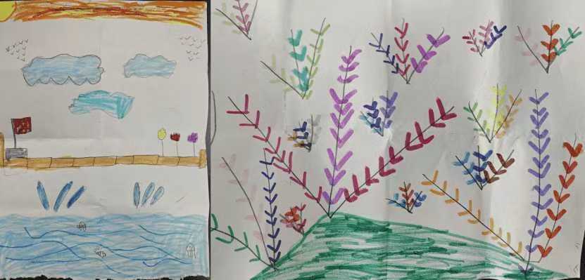 在科學拓展中,我結合江蘇科技大學學校文化特色,為同學們帶來海洋科普,同時根據與孩子們同吃同住的過程中發現浪費現象較為嚴重時,以植物為引,探究仿生學,利用廢紙開展植物仿生——折紙特色拓展教育,不僅豐富了孩子們的眼界同時也種下了節約意識的種子。