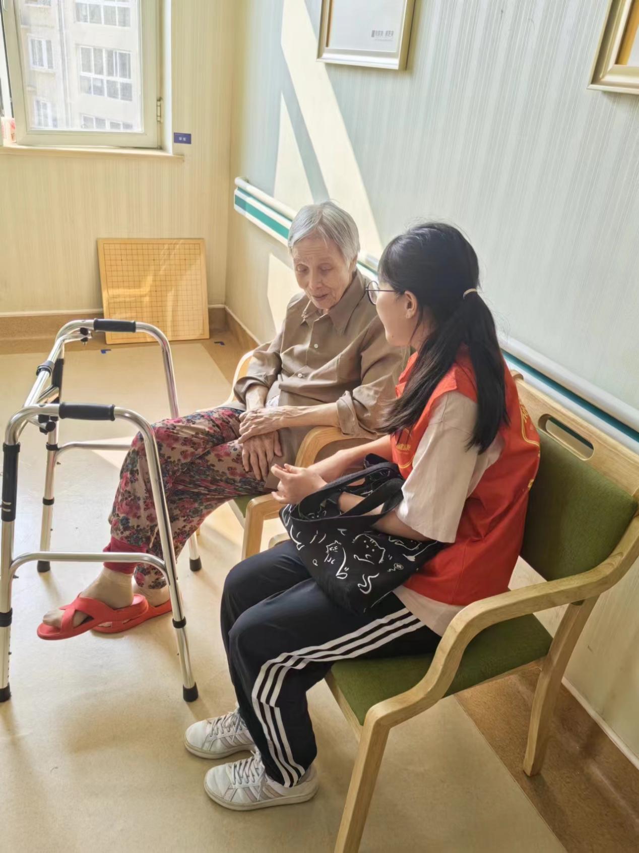 實踐隊成員與養老院老人聊天 該實踐隊成員李雪慧供圖