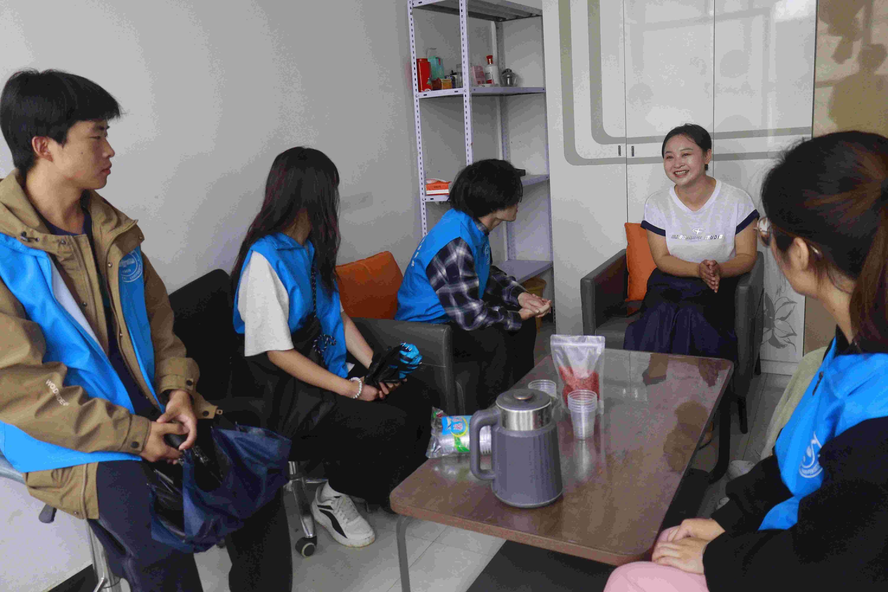 7月21日,實踐團(tuán)來到實踐第一站:曼那電子商務(wù)有限公司。通過與主要負(fù)責(zé)人張莉的訪談交流,他們了解了當(dāng)?shù)刂兴幉陌l(fā)展的新模式以及該模式對于拉動當(dāng)?shù)貗D女就業(yè)實績,助力鄉(xiāng)村振興的作用。“歡迎走過路過的朋友,歡迎來到直播間的朋友”,張莉面帶微笑向隊員們展示她的直播日常。
