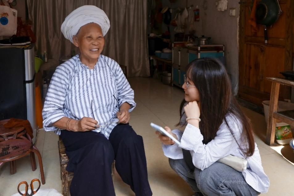 圖為實踐團成員采訪娘娘茶傳承人艾恩貴 徐佳新攝