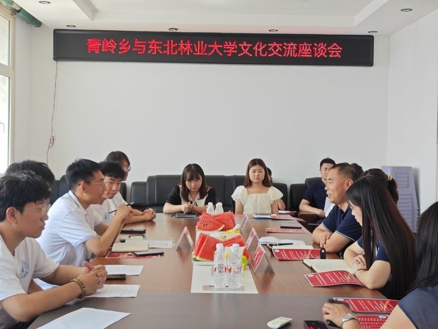 青嶺滿族鄉鄉長郎洪偉發言介紹青嶺滿族鄉黨委情況與鄉村基本情況,東北林業大學土木與交通學院本科生輔導員祝鵬程發言介紹土木與交通學院團委情況,雙方深入交流、資源共享、交流黨建工作經驗。