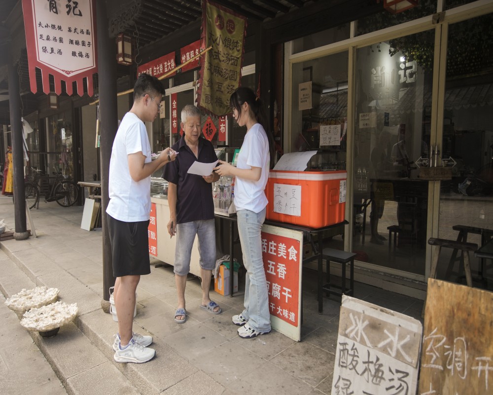 圖 1團隊成員在鳳凰鎮恬莊街道實地考察 高遠攝實踐活動初期,團隊成員們首先通過走訪村民、實地考察和線上線下問卷調查等方式,對鳳凰村的農房改造現狀進行了全面而深入的調研。他們發現,許多農房因年久失修,存在結構安全隱患,同時缺乏現代化設施,難以滿足村民日益增長的生活需求,此外,村民們對于改善居住條件、提升生活品質的愿望十分迫切。而繼源道遺址雖在十年前經歷過一次修葺,但在風吹日曬下仍有破敗跡象。在調研過程中,團隊成員們發現鳳凰村農房翻建面臨著一些挑戰,包括材料選擇、施工安全、環境保護等問題。針對這些問題,團隊提出了一系列切實可行的解決方案,如采用環保材料、優化施工流程、加強施工期間的安全管理等。