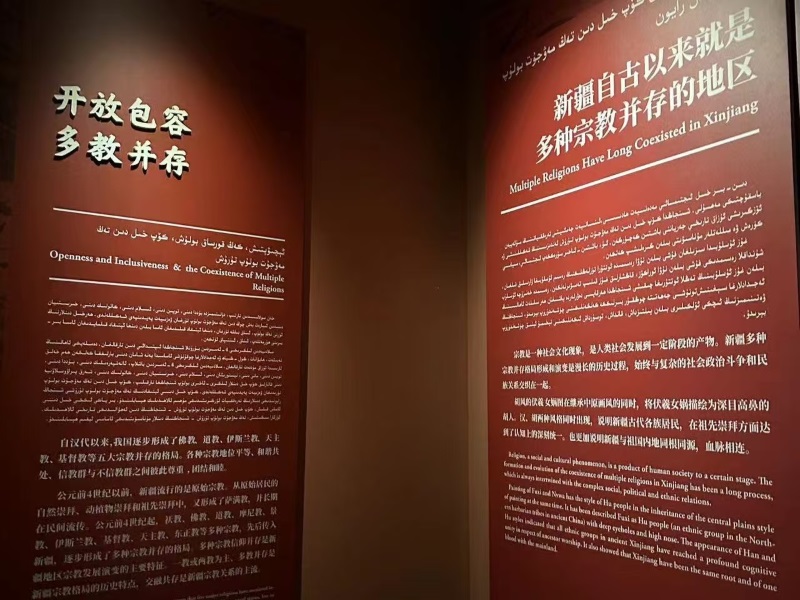 參觀結(jié)束“喀什歷史文物陳列“后,我?guī)е鴮?duì)歷史的敬畏和對(duì)未來(lái)的期待離開(kāi)。一步步走進(jìn)中國(guó)新疆歷史民族宗教文化專(zhuān)題陳列。這里的每一件展品都承載著深厚的文化底蘊(yùn),每一幅畫(huà)卷都描繪著多元文化的交融共生,每一處布局都精心設(shè)計(jì),讓人仿佛穿越時(shí)空,親身感受新疆這片土地的厚重歷史和獨(dú)特魅力。從古絲綢之路的繁華景象,到各民族共同創(chuàng)造的燦爛文明;從精美的民族服飾、樂(lè)器,到珍貴的宗教藝術(shù)品,這些展品不僅展現(xiàn)了新疆多元文化的豐富性和包容性,更體現(xiàn)了各民族在歷史長(zhǎng)河中的和諧共處與相互尊重。尤其是宗教文化部分,通過(guò)展示不同宗教信仰的文物和藝術(shù),讓人深刻理解到宗教信仰在促進(jìn)文化交流、增強(qiáng)民族團(tuán)結(jié)中的積極作用。參觀過(guò)程中,我被新疆各民族的智慧和創(chuàng)造力深深折服。他們不僅創(chuàng)造了豐富多彩的物質(zhì)文化,更孕育了深邃的精神文明。新疆的歷史和文化,是各民族共同書(shū)寫(xiě)的,每一筆都凝聚著智慧與汗水,每一劃都蘊(yùn)含著對(duì)美好生活的向往和追求。
