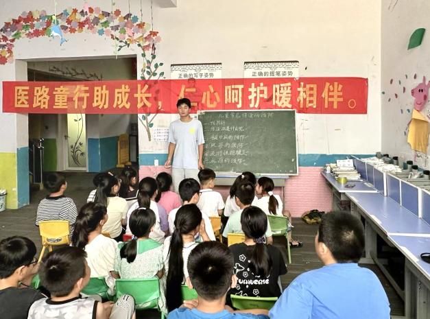 圖為實踐團成員為小學生科普兒童疾病預防知識。
