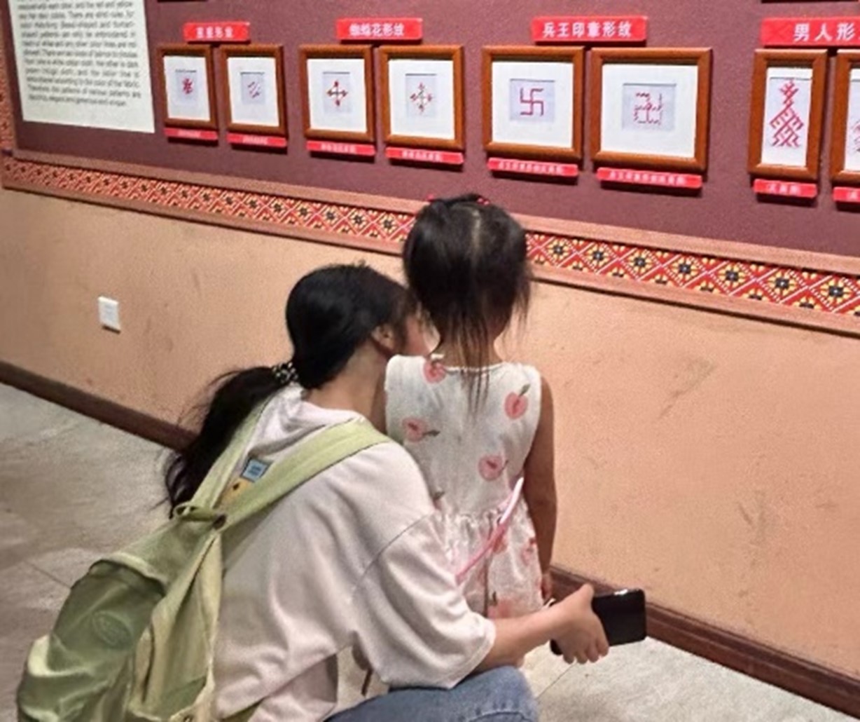 圖為講解員向實踐團成員介紹瑤繡的歷史。中國青年網通訊員 林愉珺 攝