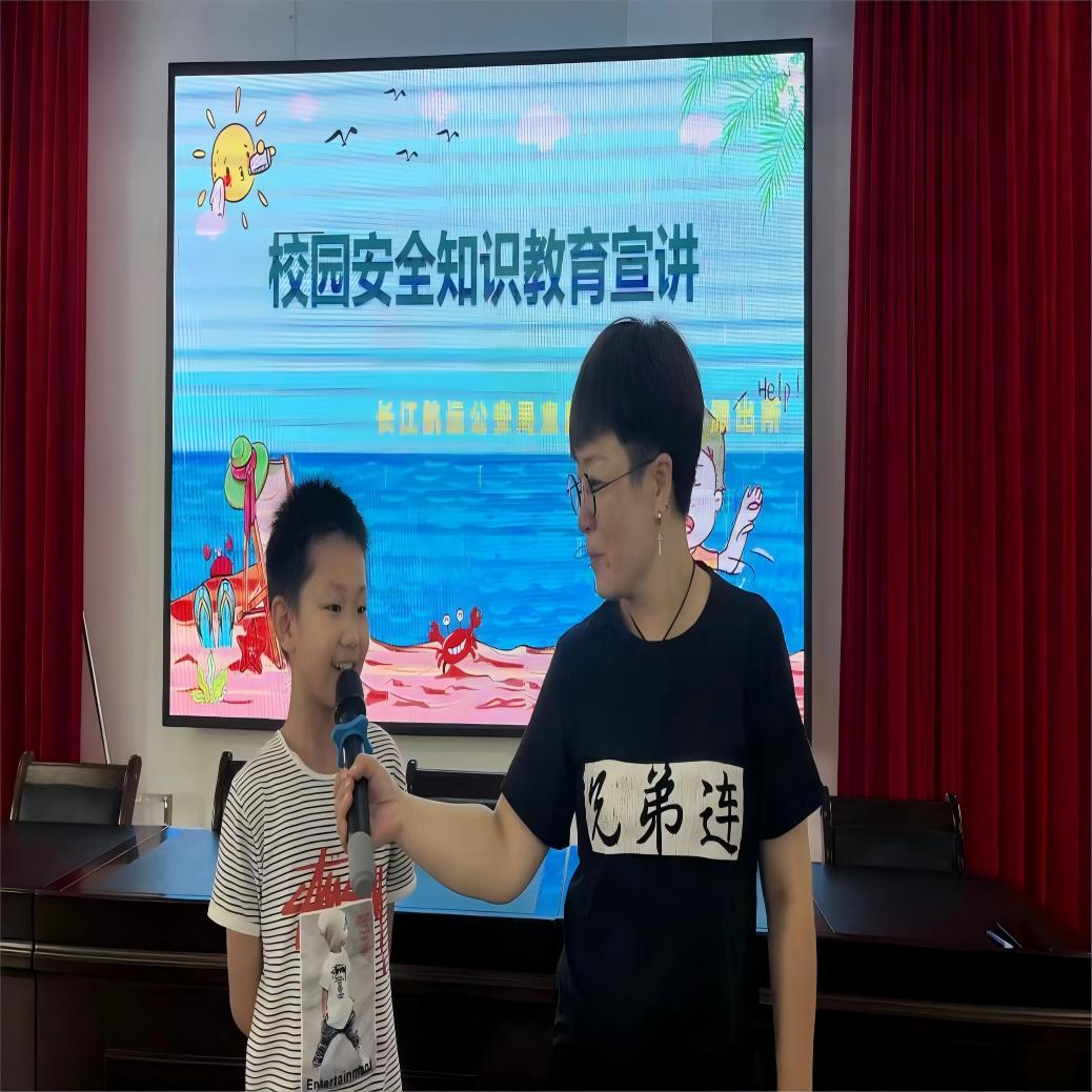 在《防溺水安全教育》課堂上,張主任講授防溺水安全教育。她通過大屏幕上的案例讓大家感受溺水的可怕。張主任深度剖析原因,讓同學記下注意要點和方法,還與學生互動答疑。