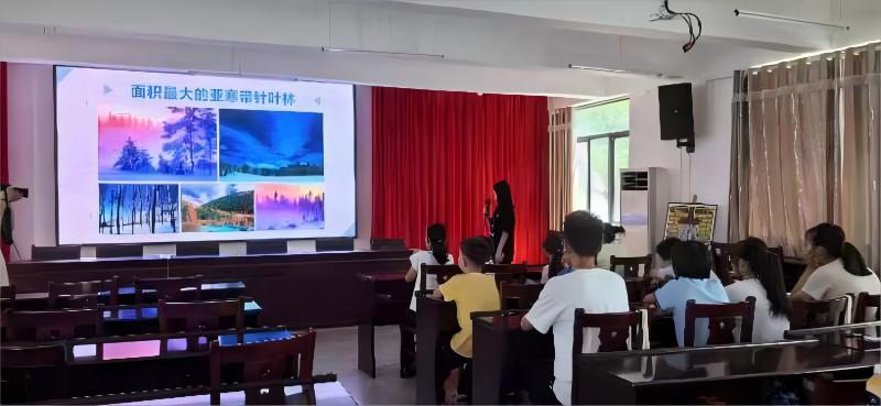 志愿者劉奕站在講臺前,劉奕的表情親切而專注,用生動形象的語言描繪著世界各地的奇妙景觀,孩子們臉上滿是好奇與興奮。志愿者劉奕通過有趣的故事和精彩的圖片,將復雜的地理知識變得簡單易懂。