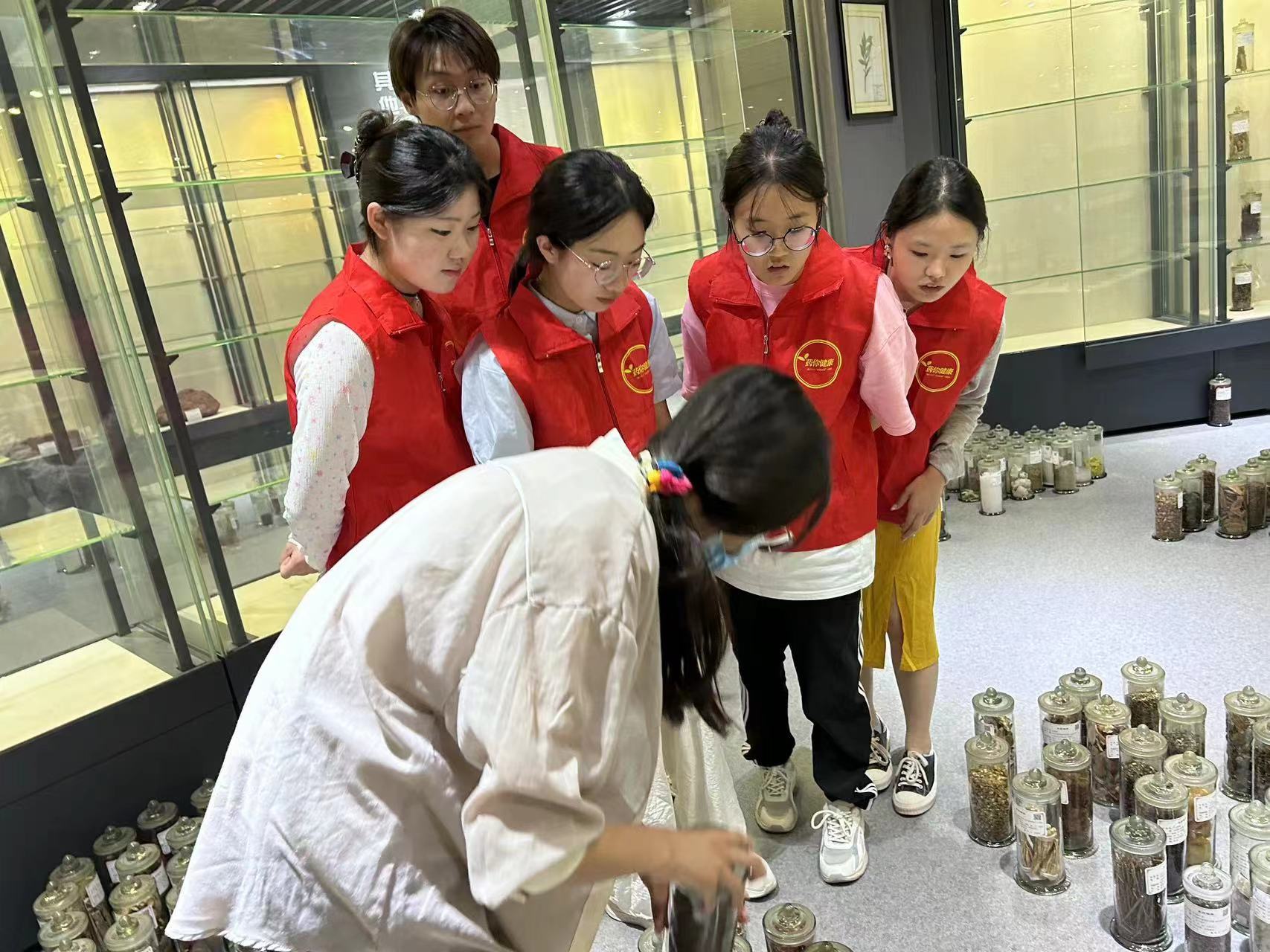 在實踐開始前,成員們聚集在一起,共同學習并掌握一些基礎的中醫藥知識,為實踐的順利進行進一步提供保障。7月13日,在工作人員的熱情帶領下,實踐隊員首先參觀了博物館中各種中醫藥樣本與動物標本,了解博物館的發展歷史以及相關中醫藥樣本的特點與療效。隨后實踐隊員們積極與游客互動,通過向游客發放相關問卷,有獎競答等方式了解人們對中醫藥的看法。此外,實踐隊員們采訪了相關工作人員,從藥效、形狀、炮制方法多方面認識不同中藥材。