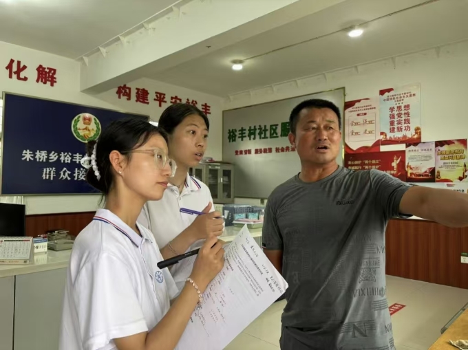 走訪入戶聽民聲,鄉村振興在行動。7月10日上午,實踐團在朱橋鄉綜合治理辦公室主任陳玲玲的帶領下前往調研第二站——裕豐村。在裕豐村黨群服務中心,團隊成員與裕豐村黨委書記、村委會主任陳標江進行了深入交流,初步掌握了農業保險在該村水稻種植、水產養殖中的發展現狀,以及當地政府關于水稻種植保險的兜底政策。同時,線上連線宣州區國元農業保險股份有限公司總經理王海安,進一步了解到朱橋鄉農業保險的宣傳方式、推行效果以及水產養殖保險險種的拓展方向,并將加大宣傳力度,不斷提高農戶的知曉度和參保度。