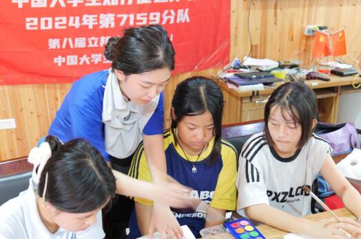 美育指引少年前行,助力成長浸潤童心啟動儀式結束之后,支教團成員們開始了今天的課程教學活動,老師們精心準備了科學實驗、編程、普通話、創意繪畫等系列特色趣味課程。其中,在地域文化創意繪畫課上,支教團曾維昕帶著孩子們在實地探訪與藝術實踐的過程中,將對本地自然、歷史與民俗的獨到理解融入畫筆,創作出一系列展現地域特色的藝術作品。