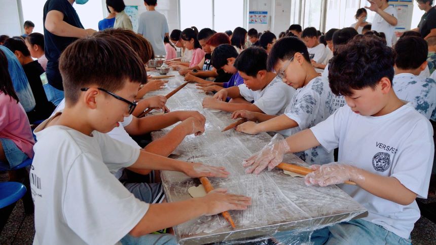我們也進行了“舌尖上的勞育”。包餃子活動以“傳承文化,共筑夢想”為主題,在白石坡小學的餐廳溫馨上演。