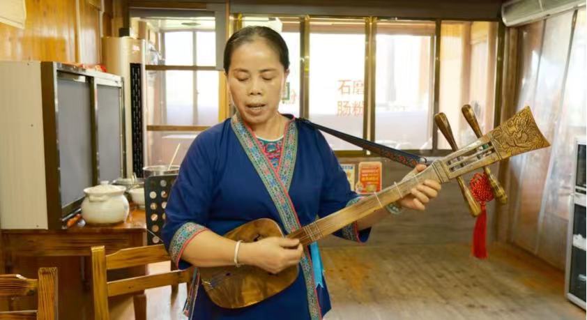 吳愛仙提到,她從初中第一次聽到侗族大歌就熱愛上這一曲調,希望能夠通過自己努力,將這一寶貴遺產繼續發揚光大。志愿者跟隨吳愛仙悠悠琴聲,唱起侗族大歌,共同感受這一非物質文化遺產魅力。