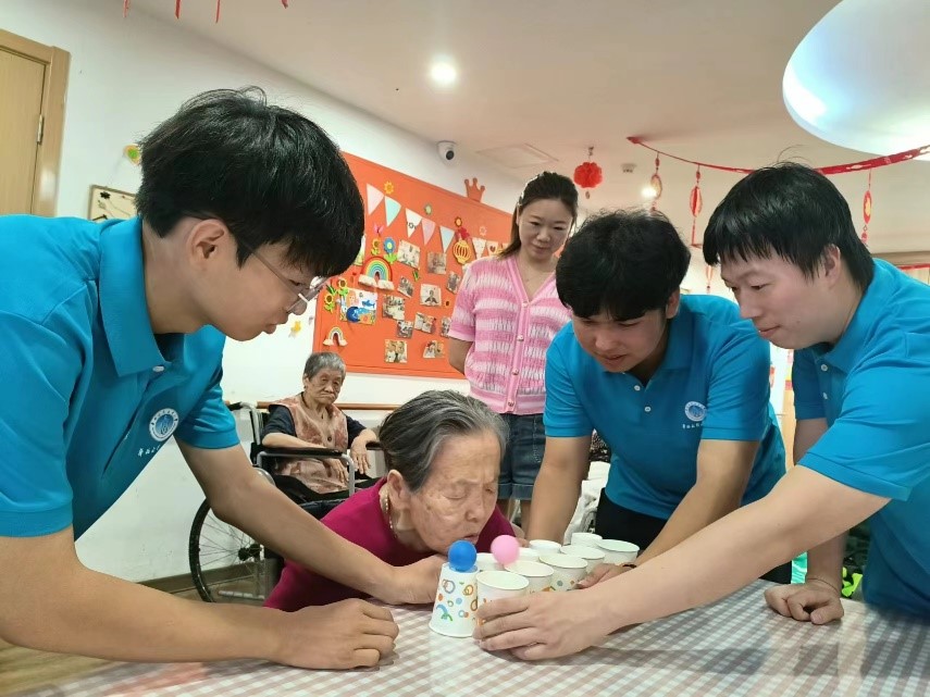 其次,實踐隊員們和老人進行吹球活動,來鍛煉老人的肺活量,隊員們都被老人的活力感染。盡管年事已高,但他們在吹氣球的時候所表現出來的專注和熱情讓隊員們感受到了生命的活力。這個活動不僅鍛煉了他們的肺活量,還讓他們在歡笑中度過了一段愉快的時光。無論年紀多大,每個人都應該保持一顆年輕的心,享受生活的樂趣。