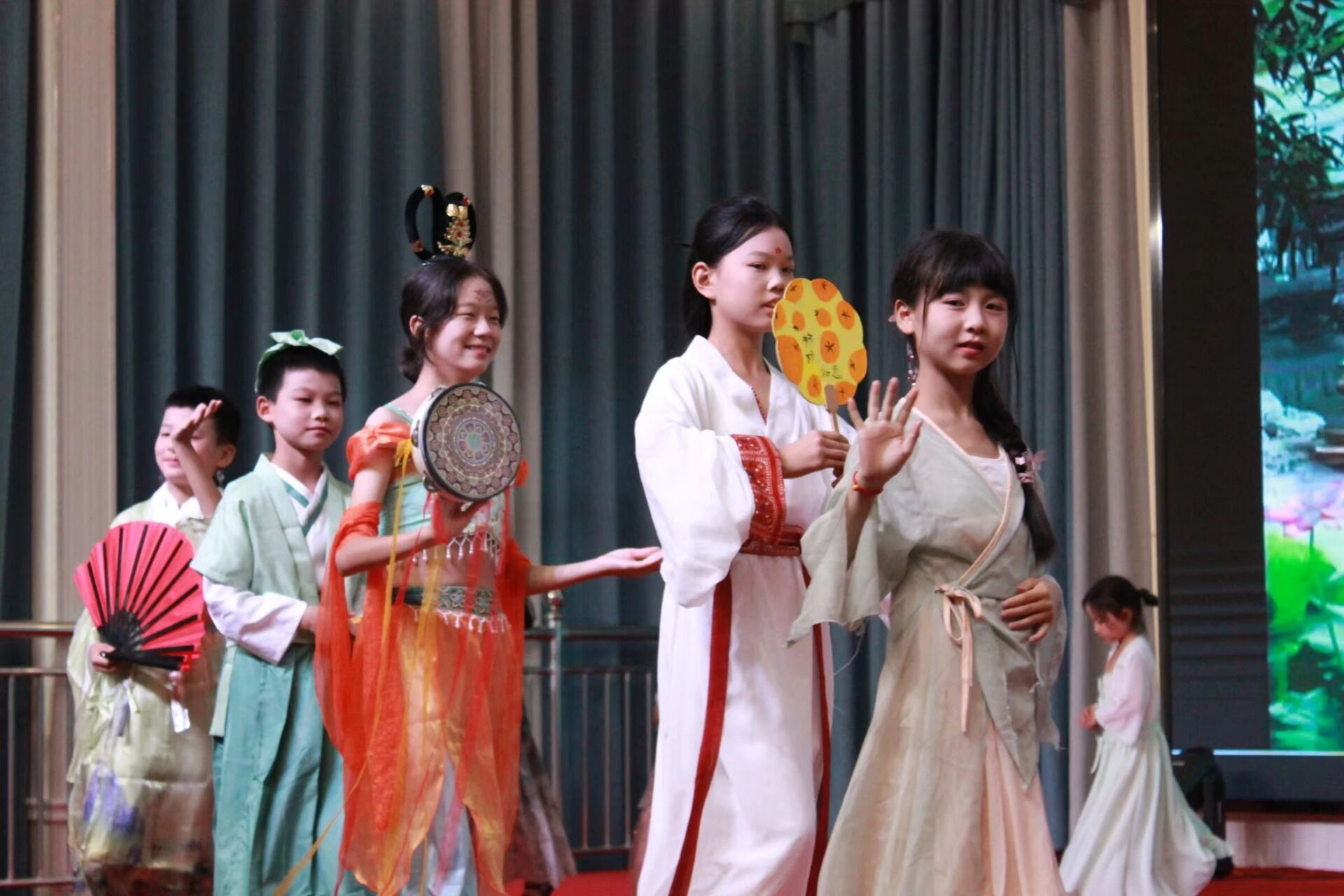有學生們一起走進漢服世界,享受漢服獨特韻味的走秀--《霓裳漢服秀》;