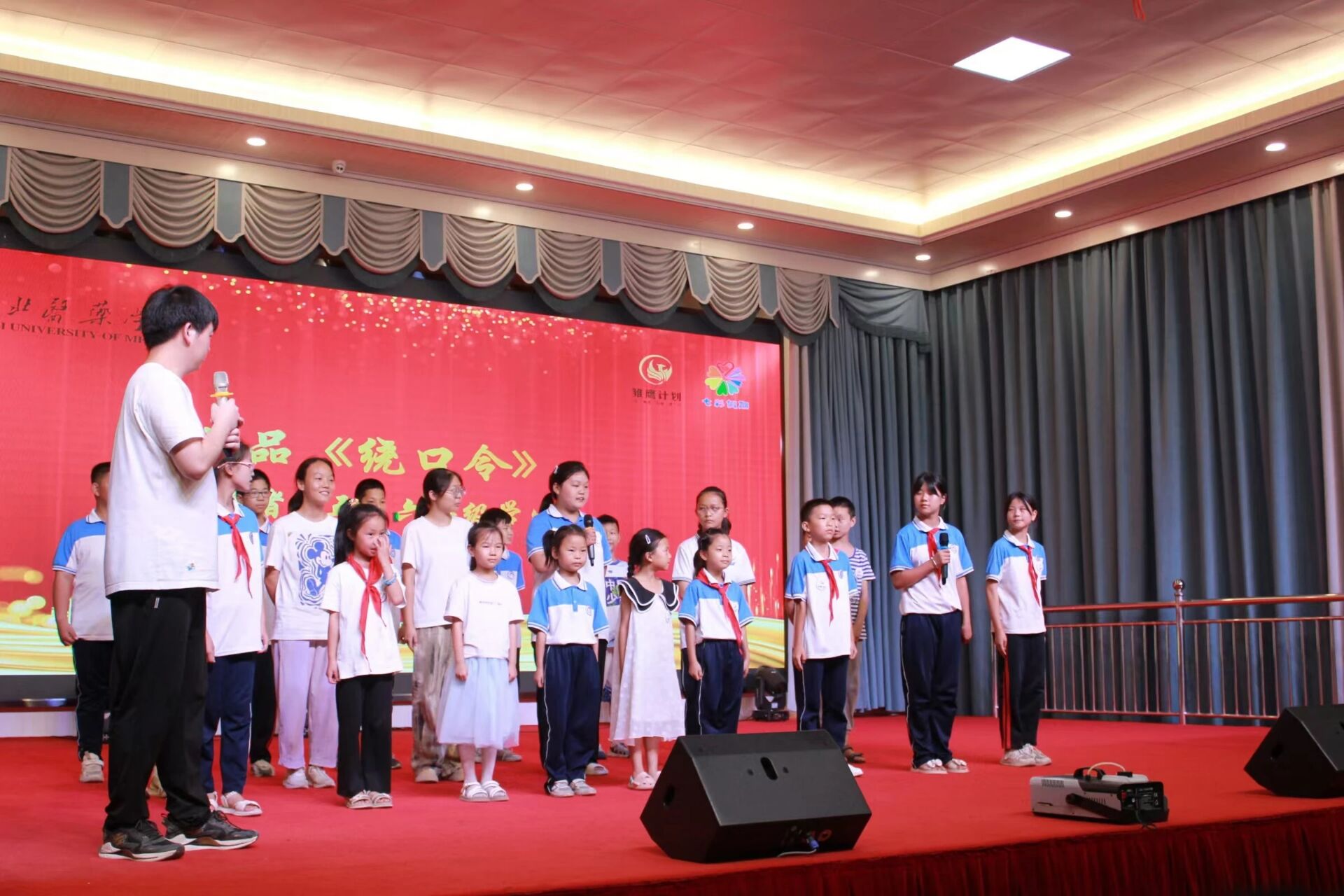 七彩假期伊始,實踐隊隊員們就著手準備各色各樣的匯報演出節目,為學生們搭建了一個展示的舞臺,同時豐富了學生們的課余生活,傳遞文化與藝術的魅力。通過10天的集中訓練,隊員們與學生們在相知相熟的過程中,隊員們精心策劃,孩子們積極參與,用汗水鑄就匯演之花。