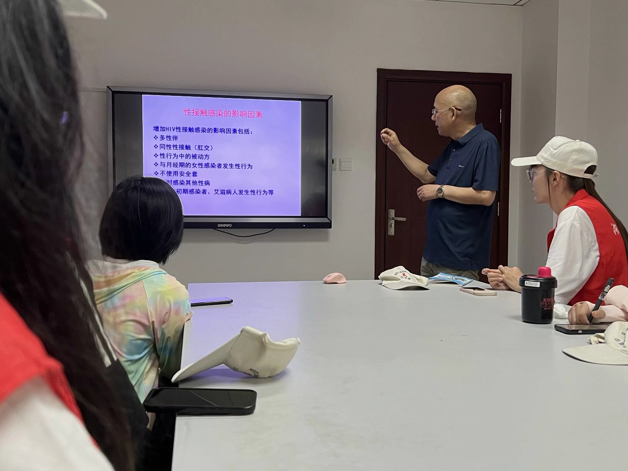緊接著,鄧所長登臺為實踐隊成員們帶來了一場全面而生動的艾滋病知識講座。鄧所長憑借豐富的專業知識和實踐經驗,通過PPT展示的形式,從艾滋病的基本知識、傳播途徑、預防措施、治療方法等方面進行了深入淺出的講解。使實踐隊成員們對艾滋病有了更加直觀、深入的了解。本次活動還特別設置了互動環節。在這個環節中,實踐隊成員們紛紛向鄧所長提問,就艾滋病的防治問題進行了深入的交流和探討。鄧所長耐心解答了大家的疑問,并分享了一些實用的經驗和建議。他鼓勵大家要積極參與艾滋病防治工作,共同為構建無艾社會貢獻自己的力量。